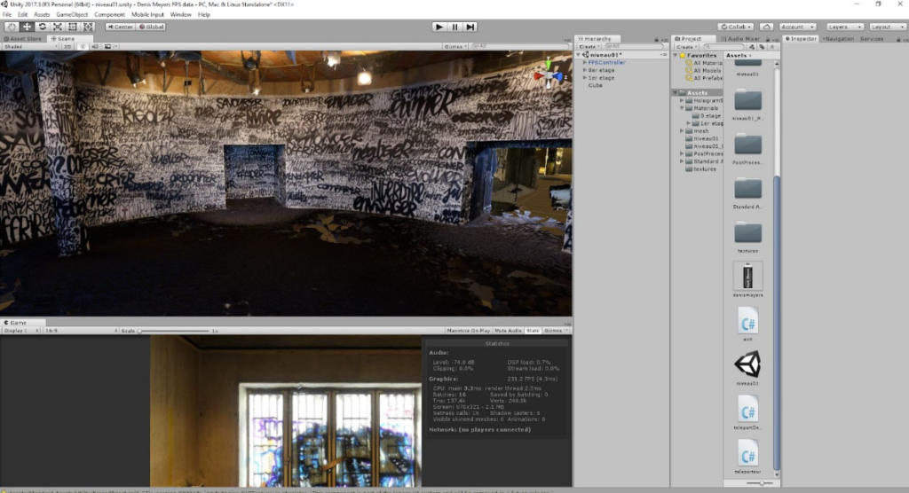 En tant que responsable du développement sous Unity, mon rôle a été d’apporter le soutien artistique et technologique nécessaire à la transposition de l’œuvre de Denis Meyers dans l’espace virtuel :